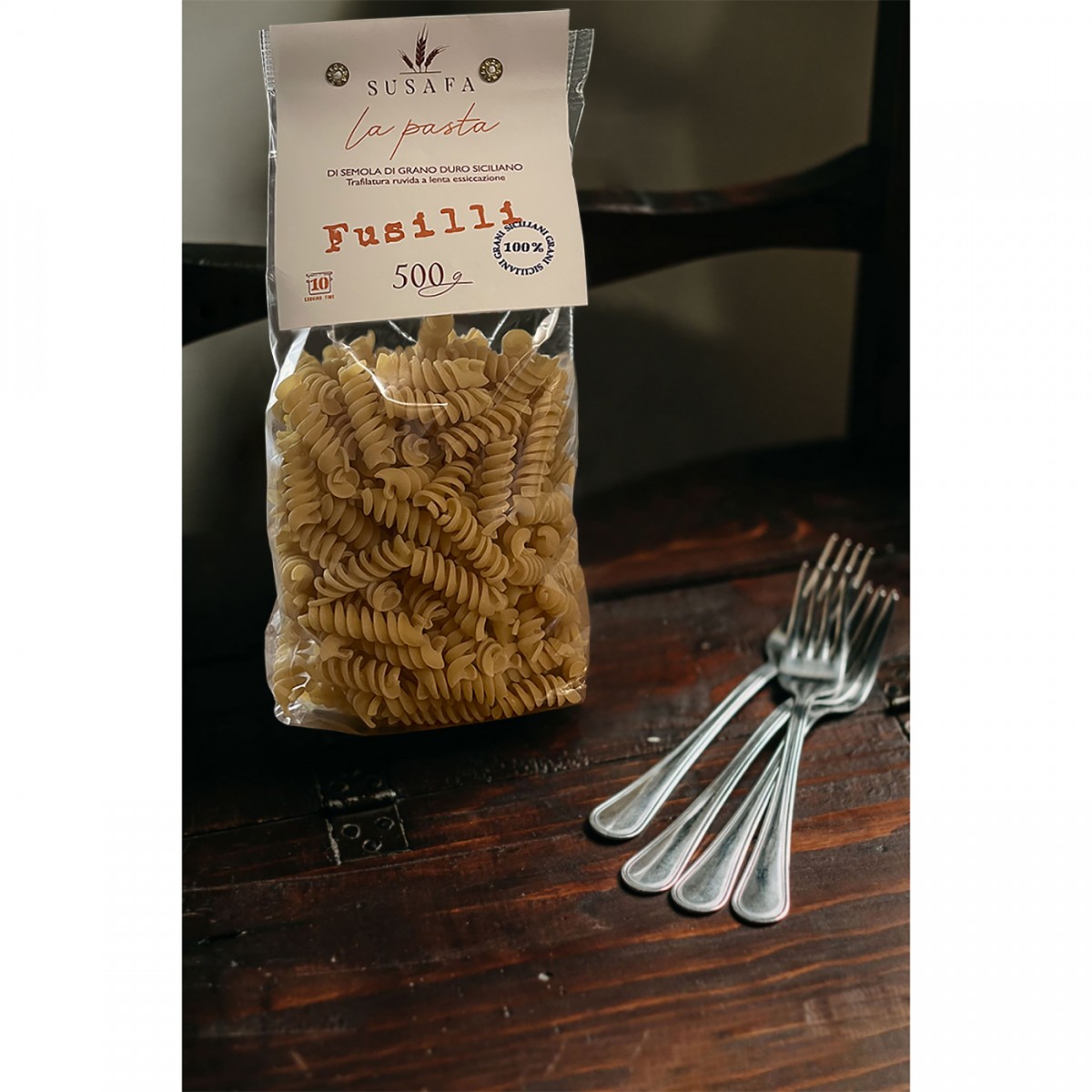 Each package contains 500 gr of dry pasta made with indigenous durum wheat, richer in nutrients than the standard semolina variety. Dietary fibers present in reasonable quantities lower blood sugar and cholesterol levels in the blood.